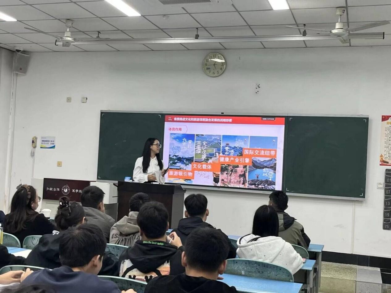 活动中,马克思主义学院“红帆”宣讲团成员苏呷木小米结合乐山文旅资源禀赋,强调要以党建为引领,发挥体育学科的优势,在“体育+旅游”“体育+康养”等领域探索实践路径;关光富书记围绕“体育赛事引流”“户外休闲项目开发”等方向,分享了将地域文化与体育活动结合的策划思路;学生党员则结合专业学习,提出了参与乐山文旅体育项目志愿服务、赛事执行的具体倡议。