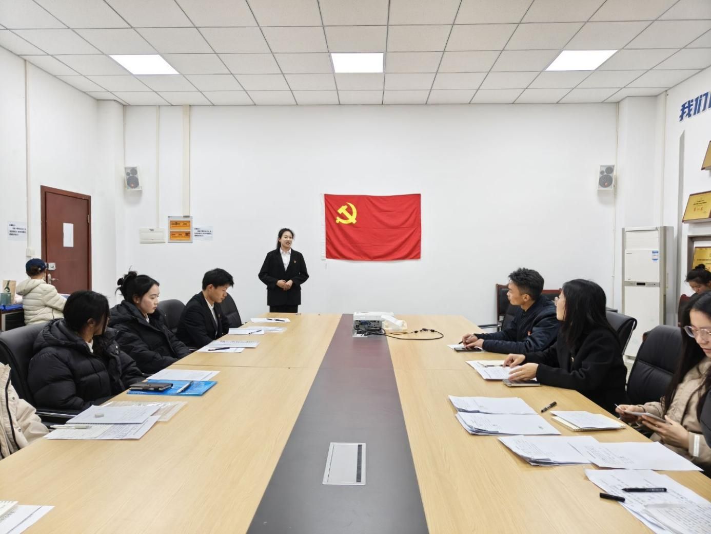 杜小敏对大会作出总结:此次会议既是对发展对象过往思想、学习与工作表现的充分肯定,也是一次深刻的党性教育。希望各位新发展党员以此为崭新起点,时刻以党员标准严格约束自身言行,坚定理想信念、锤炼过硬本领、主动担当作为,密切联系同学、群众,切实履行党员义务,以更饱满的热情践行党员的使命担当。