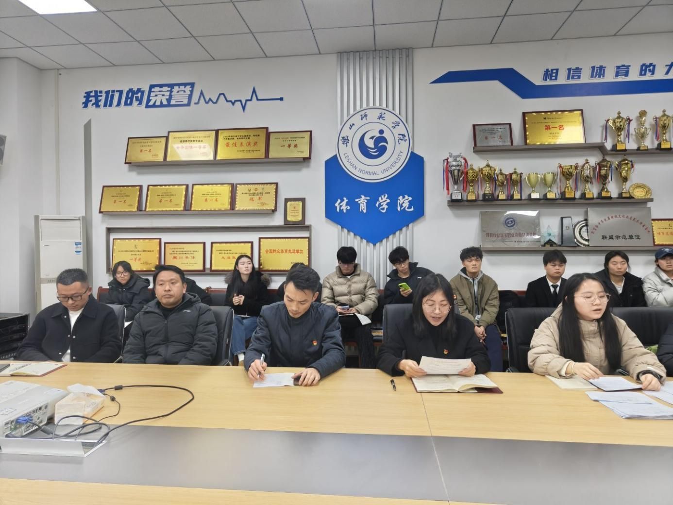 本网讯(文/董香丽、图/邓刘杰)12月8日下午18时,体育学院学生党支部在体育学院会议室召开接收预备党员支部大会。由体育学院学生党支部书记杜小敏主持。