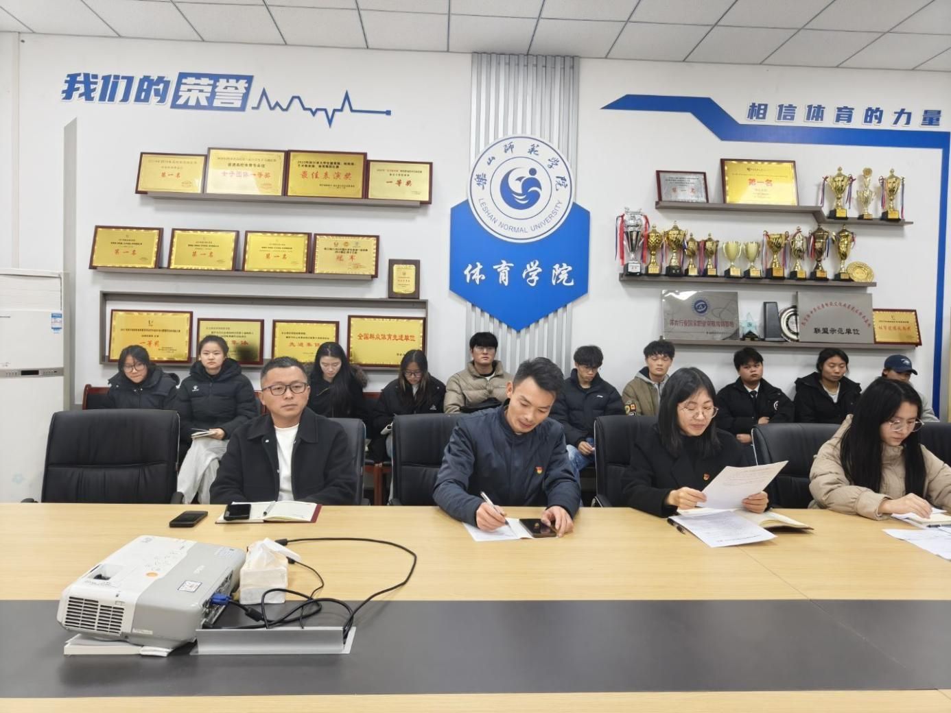 本网讯(文/董香丽、图/邓刘杰)12月12日下午,体育学院学生党支部在体育学院会议室召开预备党员转正支部大会。会议由体育学院学生党支部书记杜小敏主持。