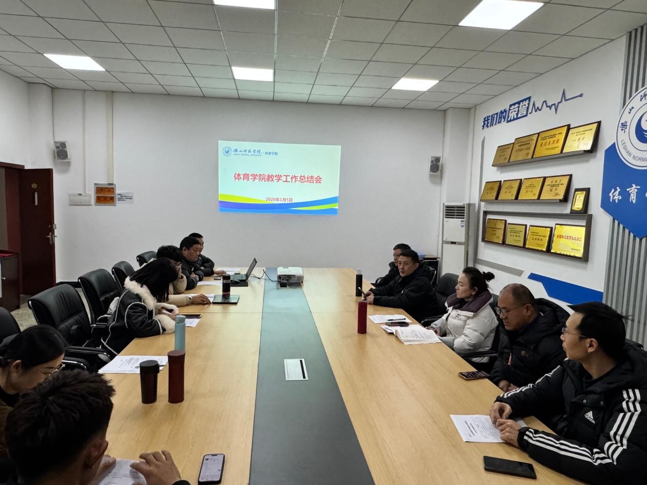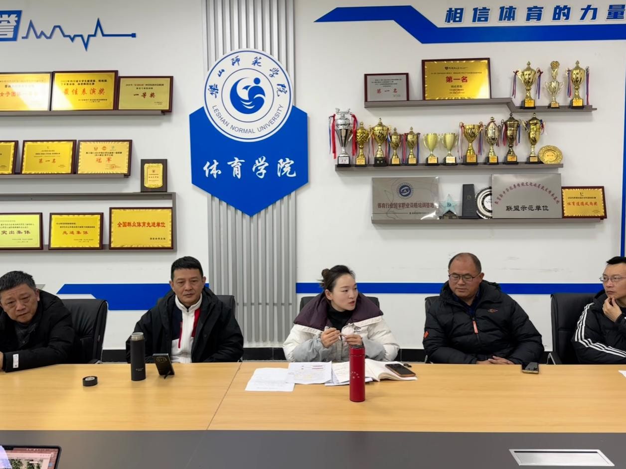 本网讯(文图/刘松)体育学院2025年度教学工作总结会于2025年1月5日在体育学院会议室召开。社会体育专业负责人王志刚教授、教学与科研管理办公室负责人邹勋及各专业方向课程组长参加会议。会议由石曼曼副院长主持。本次会议主要任务是总结2025年教学工作,研究部署2026年教学重点任务,为学院教学高质量发展奠定基础。
