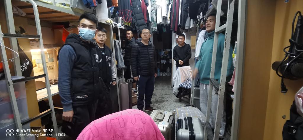 陈勋玮一行对寝室的卫生、防疫和用电安全等情况进行了排查,对部分卫生打扫不彻底、寝室物品摆放凌乱、电插座放置较多的寝室提出了整改要求和意见,同时就日常学习、生活问题和寝室同学进行了深入交流。陈勋玮在检查过程中,要求大家认真执行学校和学院的防疫工作要求,同时保持积极乐观心态,做到防疫不停学,通过加强专业锻炼等方式提高身体素质,增强自身免疫能力,同时特别强调要严格遵守用电规定,消除安全隐患,预防火灾。