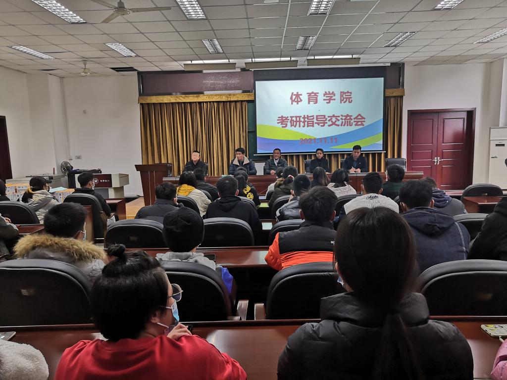 本网讯(文、图/杜小敏) 2021年11月11日下午16时,体育学院在弘毅楼312召开考研指导交流会,院长张峰、副书记(主持工作)钟大勇、副院长黄河、张爱平出席,专业指导教师关玲香、全体辅导员、所有考研学生参加,副书记陈勋玮主持。