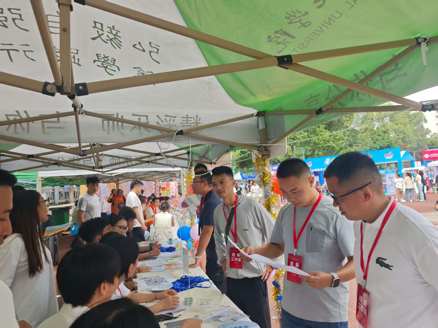 为确保迎新工作高效有序,学院早在开学前一周便成立迎新工作专班,制定详细实施方案。针对体育专业新生行李多、器材特殊的特点,安排专人协助新生搬运运动背包、训练器材,并在宿舍楼下设置临时储物区。迎新点还贴心准备了急救箱、饮用水、遮阳棚,为新生及家长提供便利。“从下车到入住宿舍,全程都有志愿者引导,比想象中顺利太多!”
