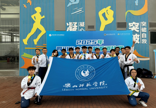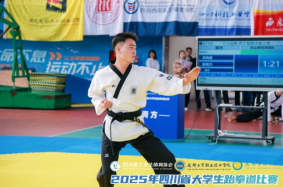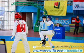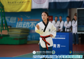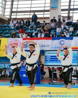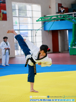 本网讯(文、图/曾祥义)2025年10月31日至11月2日,由四川省教育厅、四川省体育局共同发文,四川省大学生体育协会主办的“2025四川省大学生跆拳道比赛”在成都工贸职业技术学院体育馆举行,本次比赛按省级校园体育赛事规格和要求执行,来自全省37所高校的437名运动员参加了本次比赛。我校跆拳道代表队由张爱平副院长担任领队,石曼曼副院长、曾祥义及王建勋三人组建教练团队,带领15名运动员参加了甲组(本科非体育专业)和丙A组(体育专业本科组)的比赛。