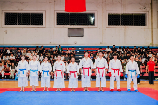 训练营活动结束后,代表队马不停蹄的回到学校,参加10月8日晚上19:30举行的体育学院专业展示活动,代表队队员们再次以英姿飒爽的气质,昂扬的气场,向体育学院的同学们展示了空手道高水平代表队专业水准和感染力,同学们为代表队队员们的展示报以阵阵的喝彩与掌声。