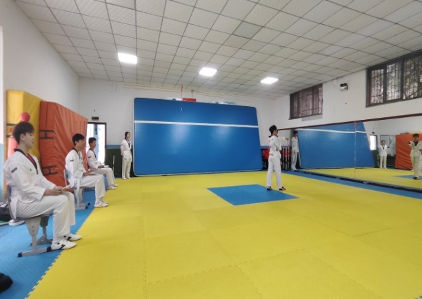 23级搏击方向的同学们开启了自己的教练之旅,在跆拳道、散打和特技课中,耐心为学员们讲解动作要领,亲自示范标准姿势,并一对一地纠正学员们的动作,将课程学习的内容扎实的运用到实践教学中。24级搏击方向的同学通过跆拳道品势比赛裁判的训练,不仅学会了口令和手势,更是在学习扣分要求中纠正和巩固了自己的技术动作,同时还增强了自信心和团队协作能力。
